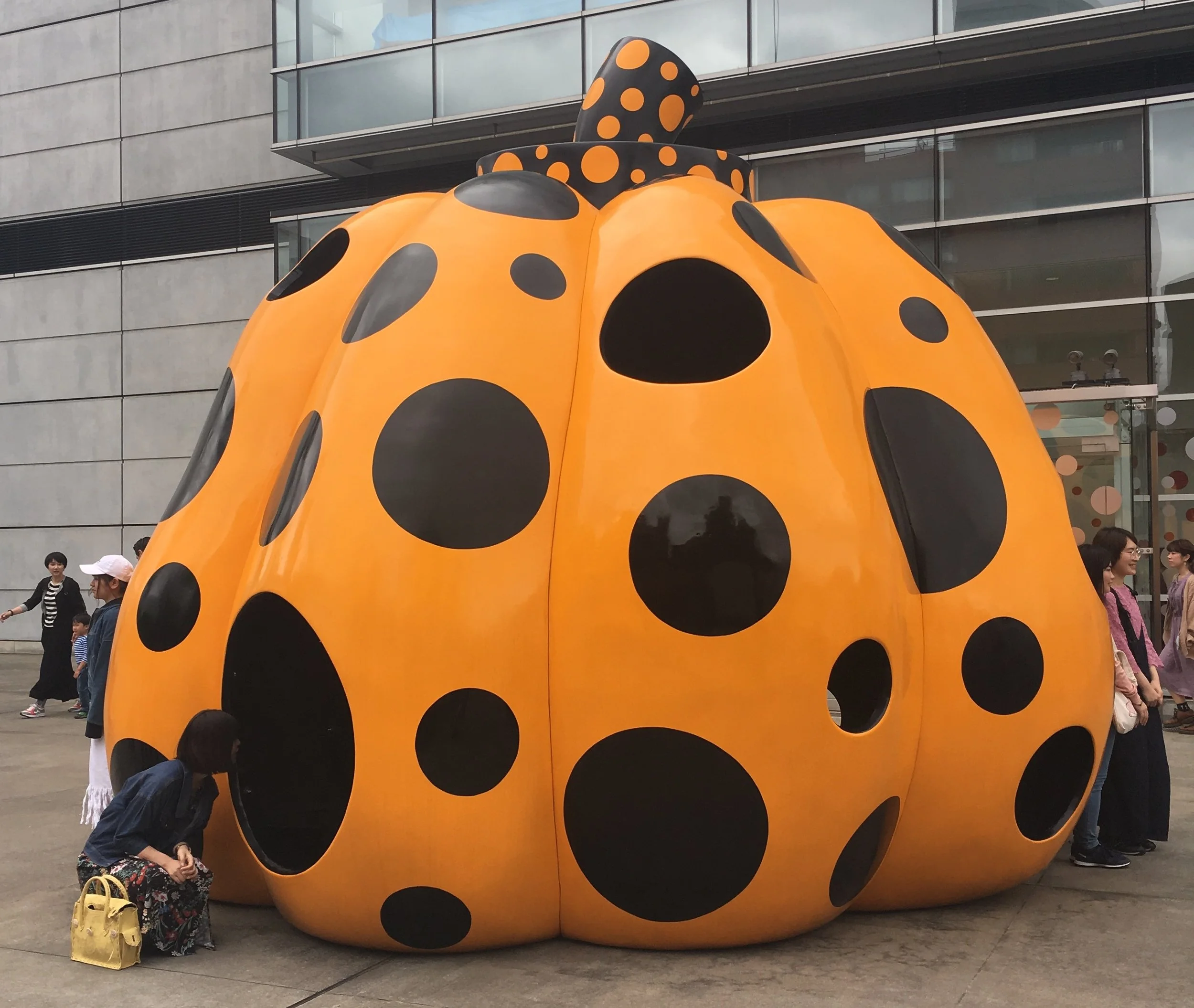 'My Eternal Soul' is an exhibition of over 270 works that was being displayed at Tokyo's National Art Center. A giant orange-and-black pumpkin sat outside the museum main entrance and even the surrounding trees had got into the spirit of spots, with their lower halves wrapped in red and white polkadot paper.